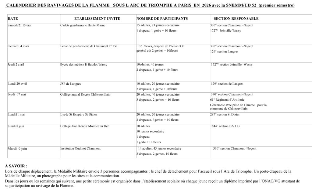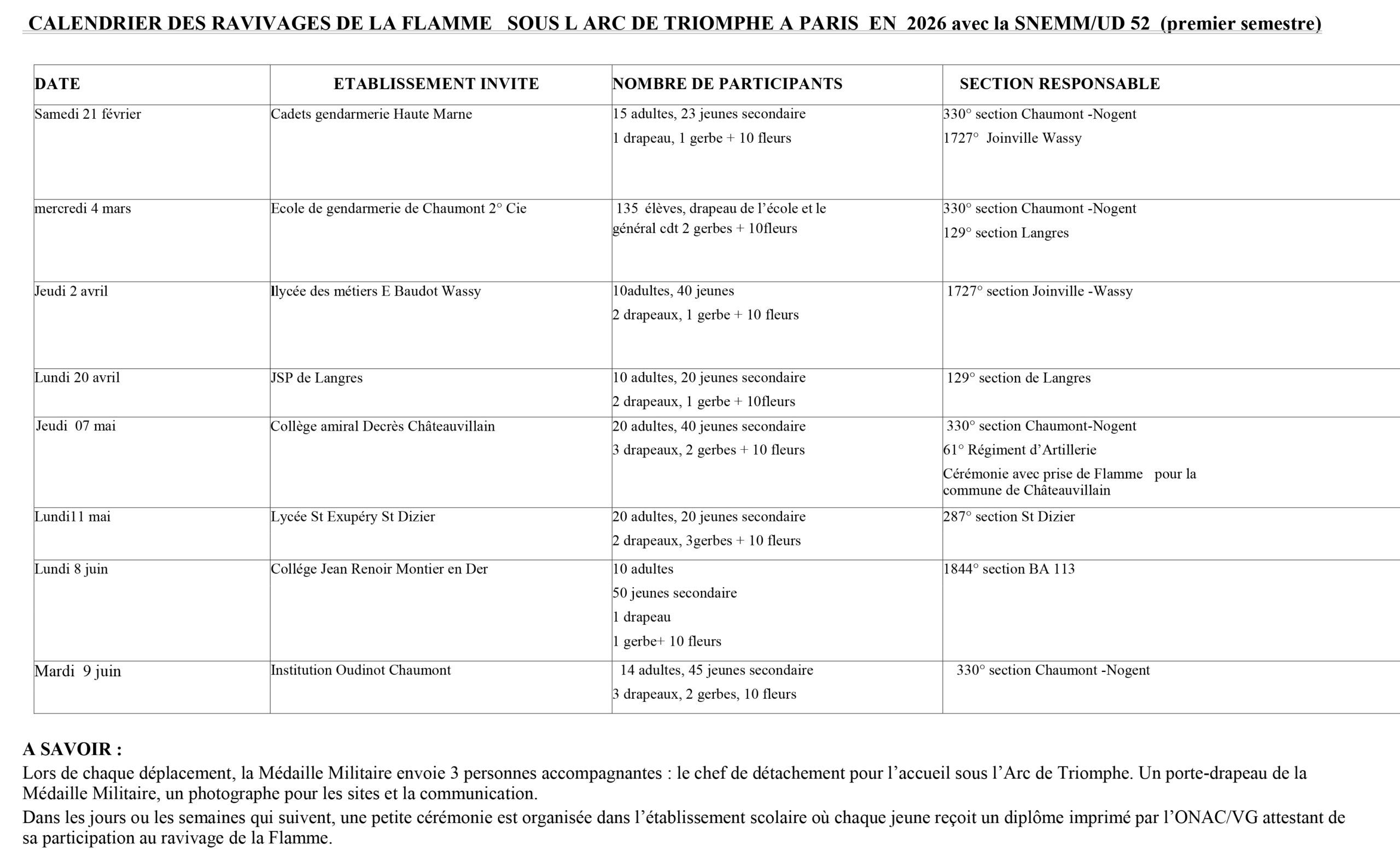 Calendrier prévisionnel 2026 des opérations de ravivage de la Flamme Publié le 24 janvier 2026 par Hervé