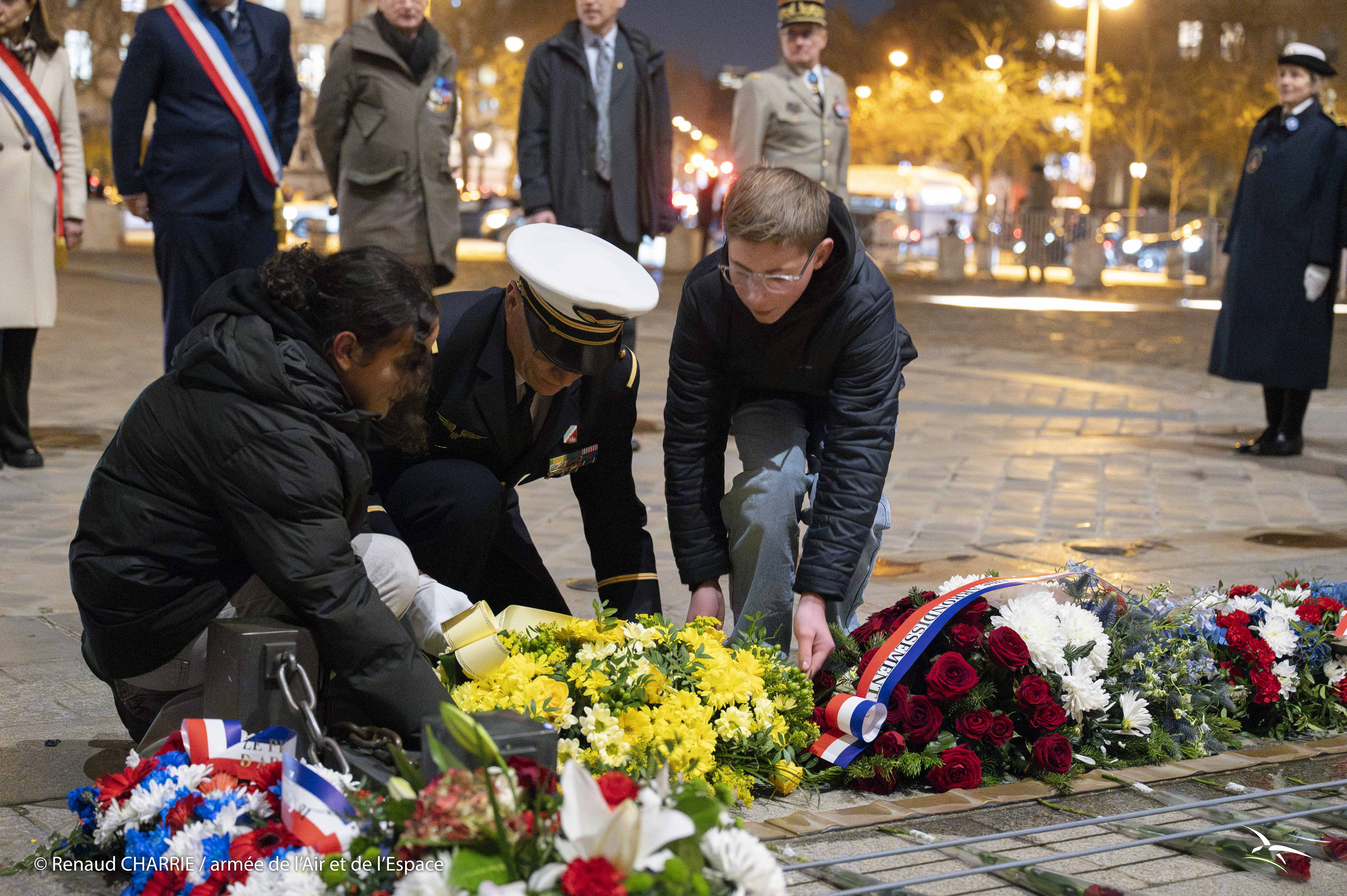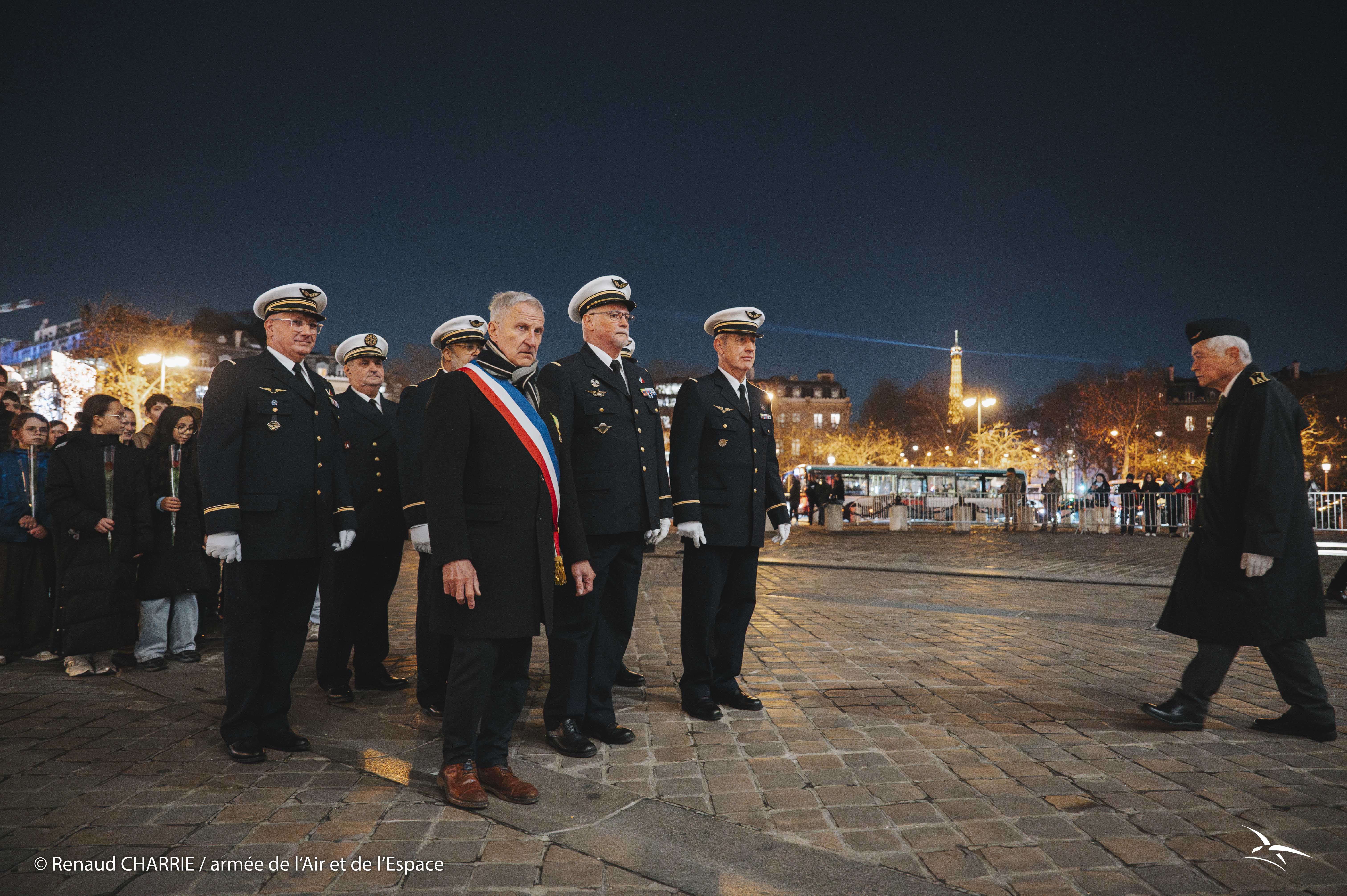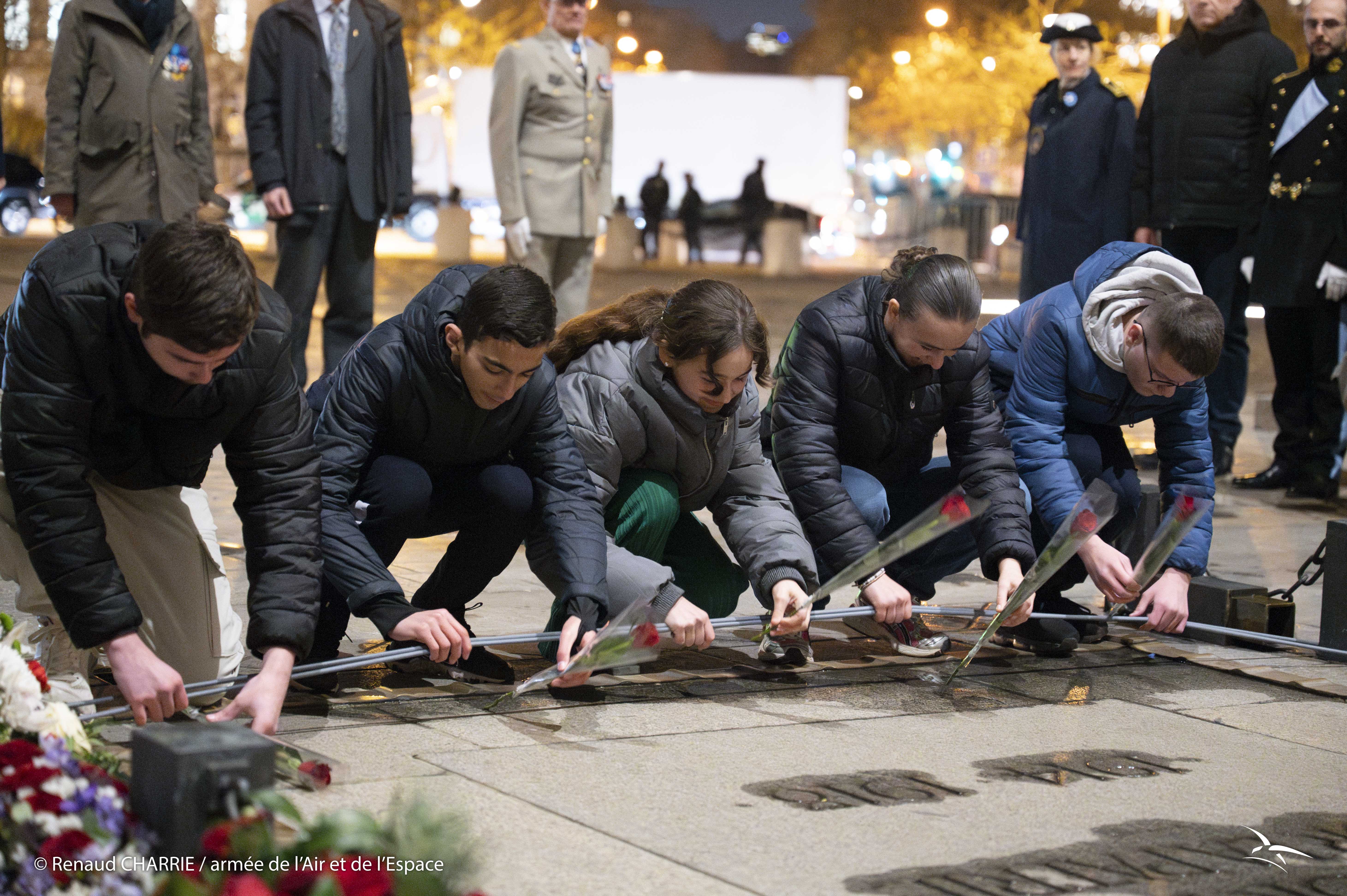 Jeudi 04 décembre 2025, la BA 113 et le collège Anne Frank de Saint-Dizier ont déposé une gerbe de fleurs sur la tombe du soldat inconnu et ont participé à la cérémonie du ravivage de la flamme sous l’arc de triomphe.