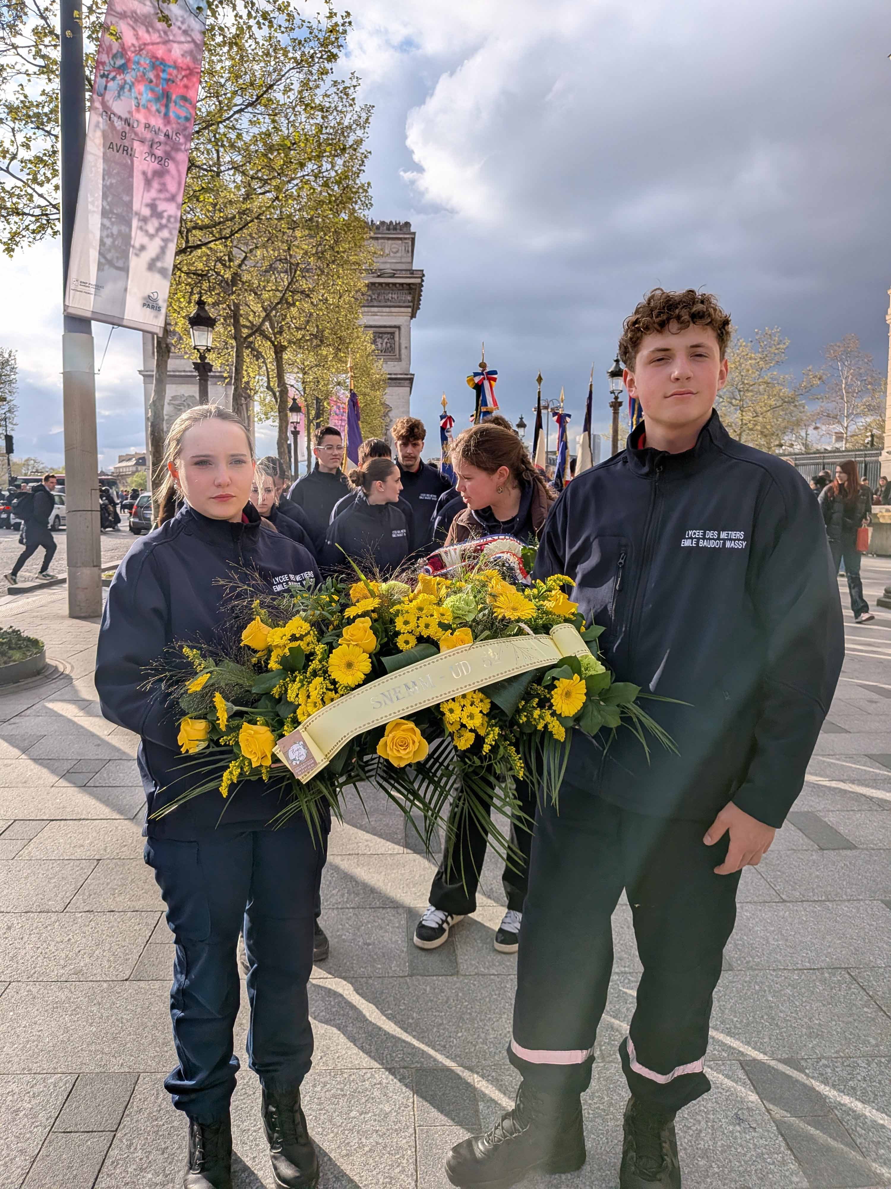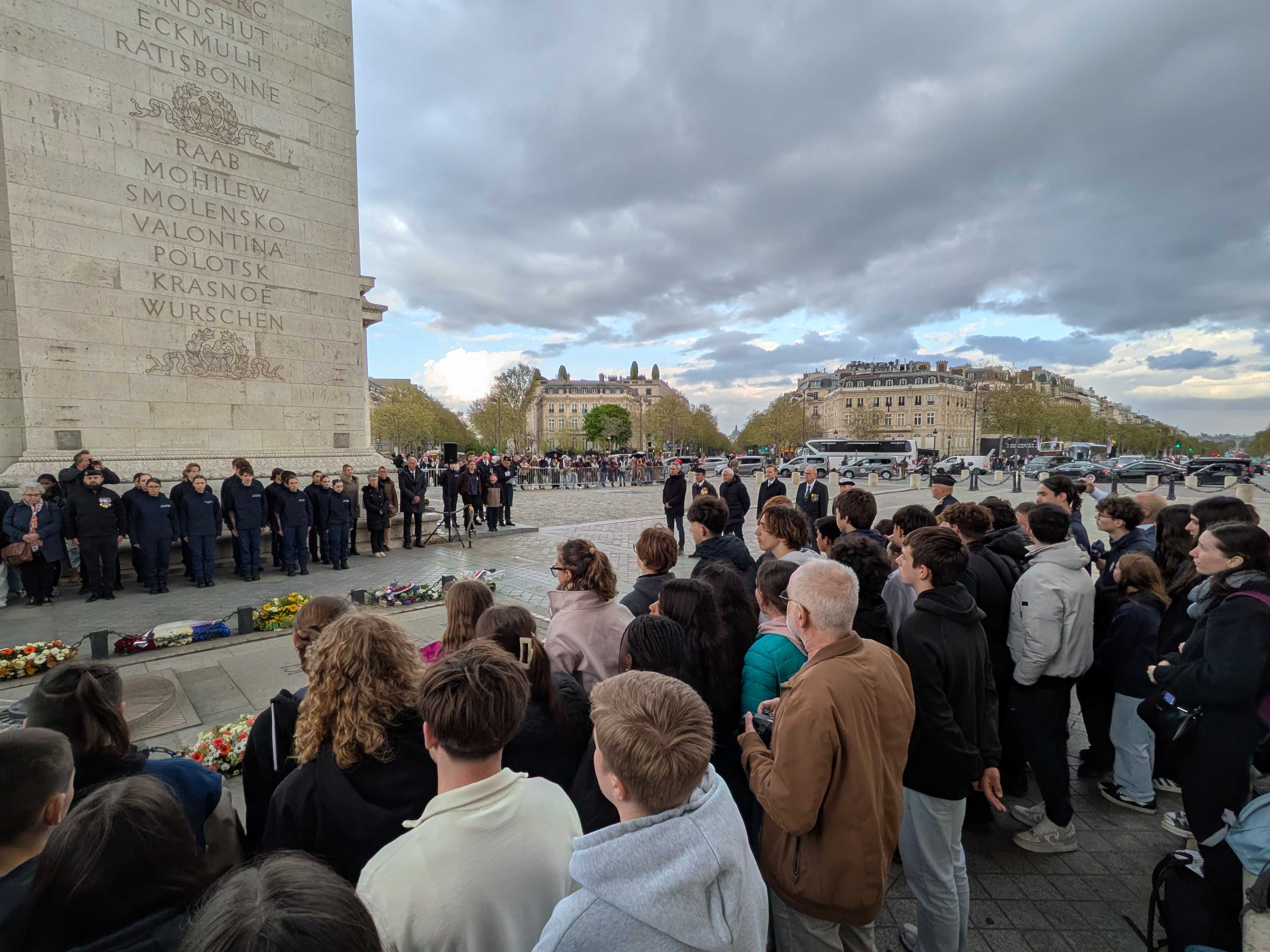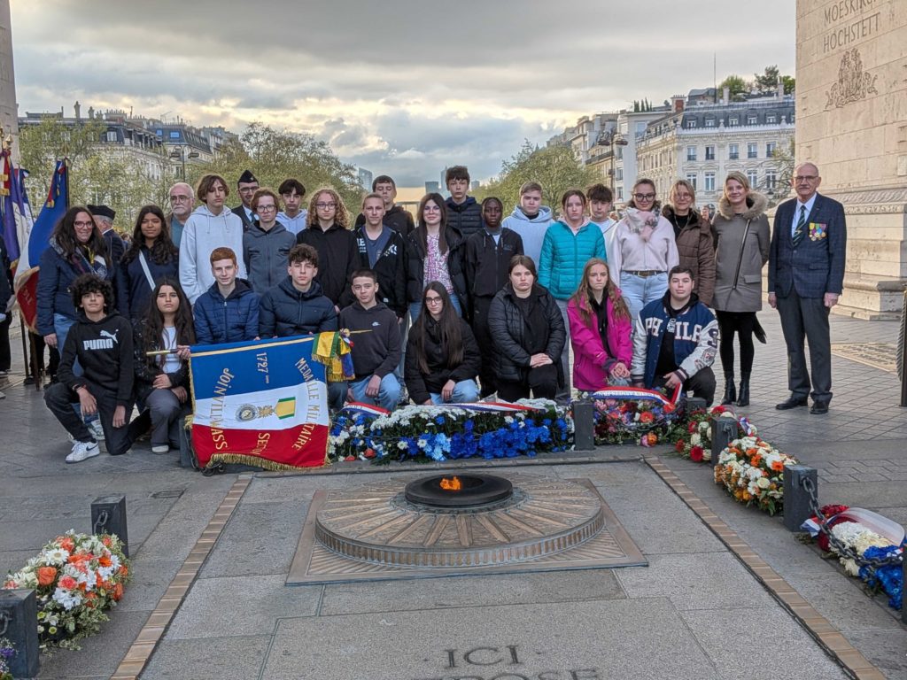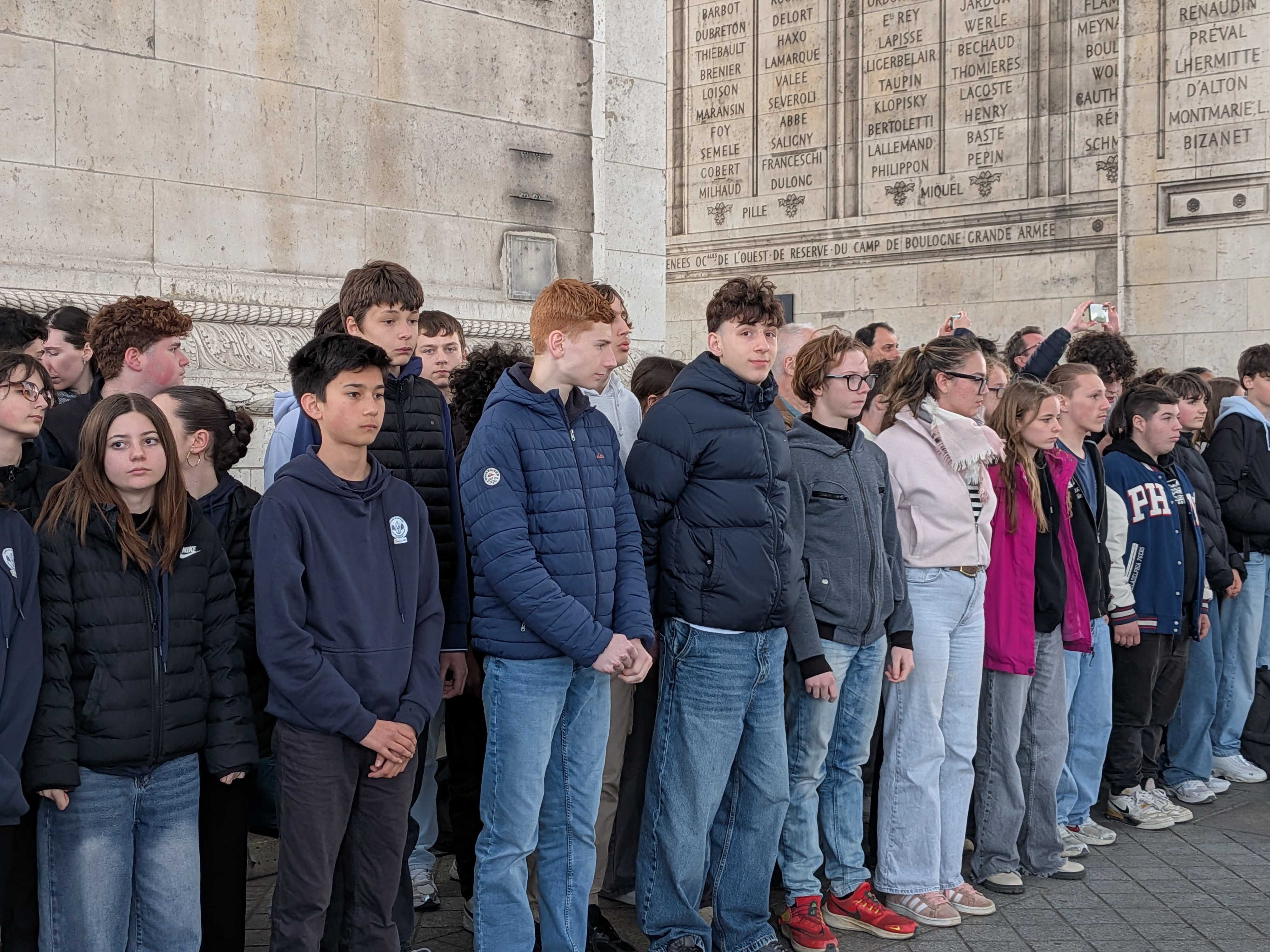 Jeudi 2 avril 2026, invités par l’Union Départementale de la Médaille Militaire de Haute-Marne et avec le concours de la 1727ème section de Joinville – Wassy, 18 élèves de seconde des métiers de la sécurité du lycée Emile Baudot et 23 collégiens de la classe de troisième du collège Paul Claudel de Wassy se sont rendus à la cérémonie journalière du ravivage de la Flamme sous l’Arc de Triomphe, en présence de M. Claude COUSIN, proviseur, de Mme DROUIN, principale et de 4 professeurs accompagnants.