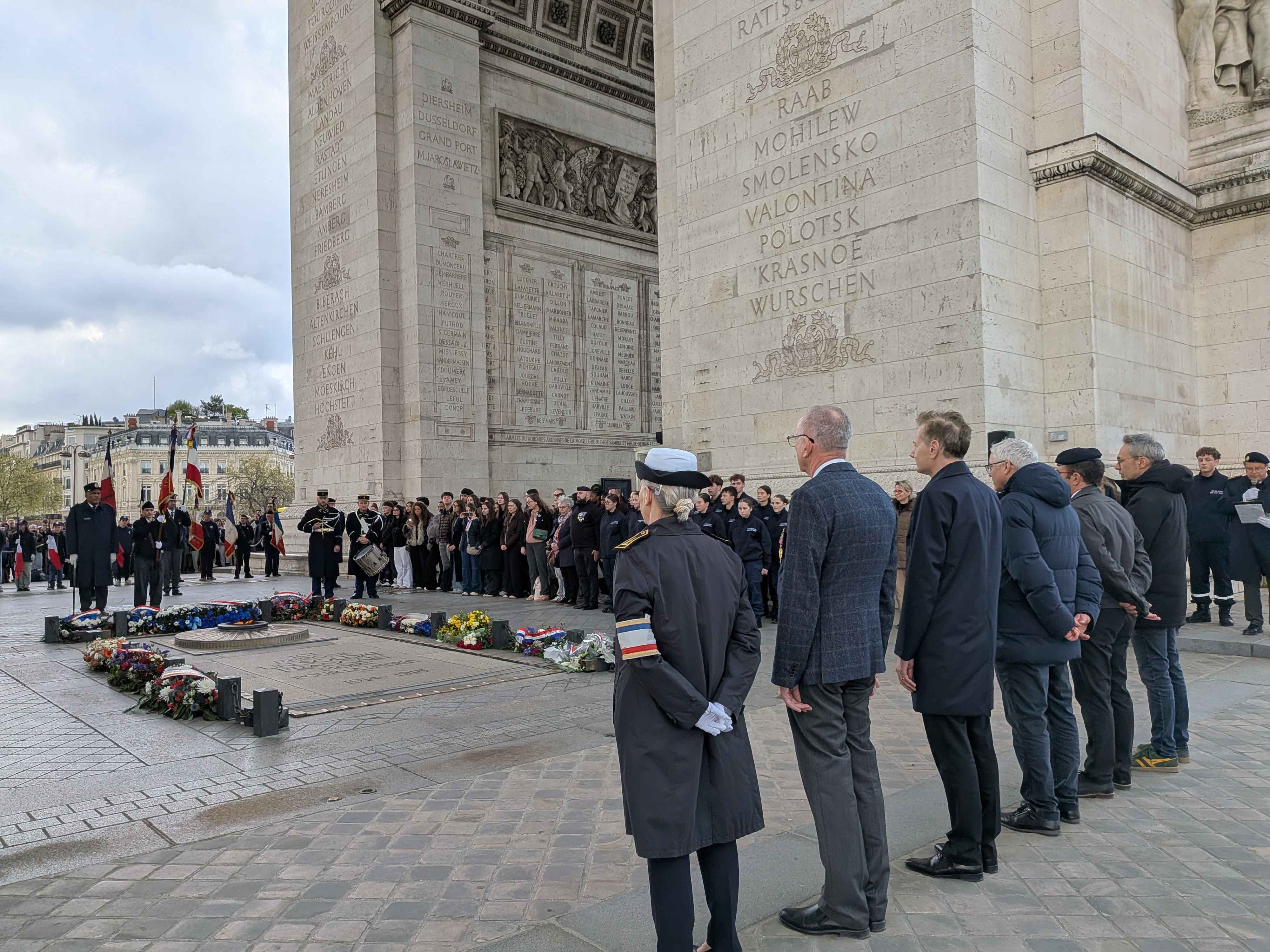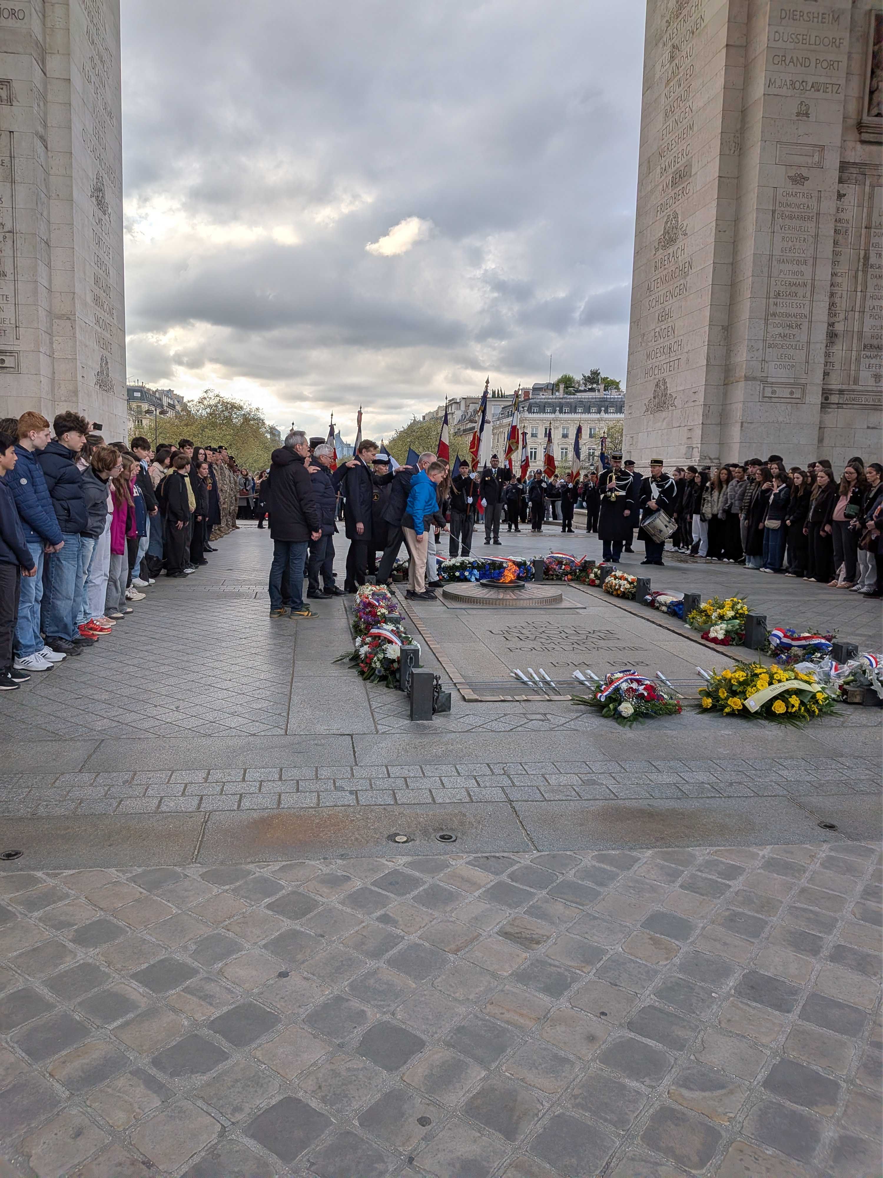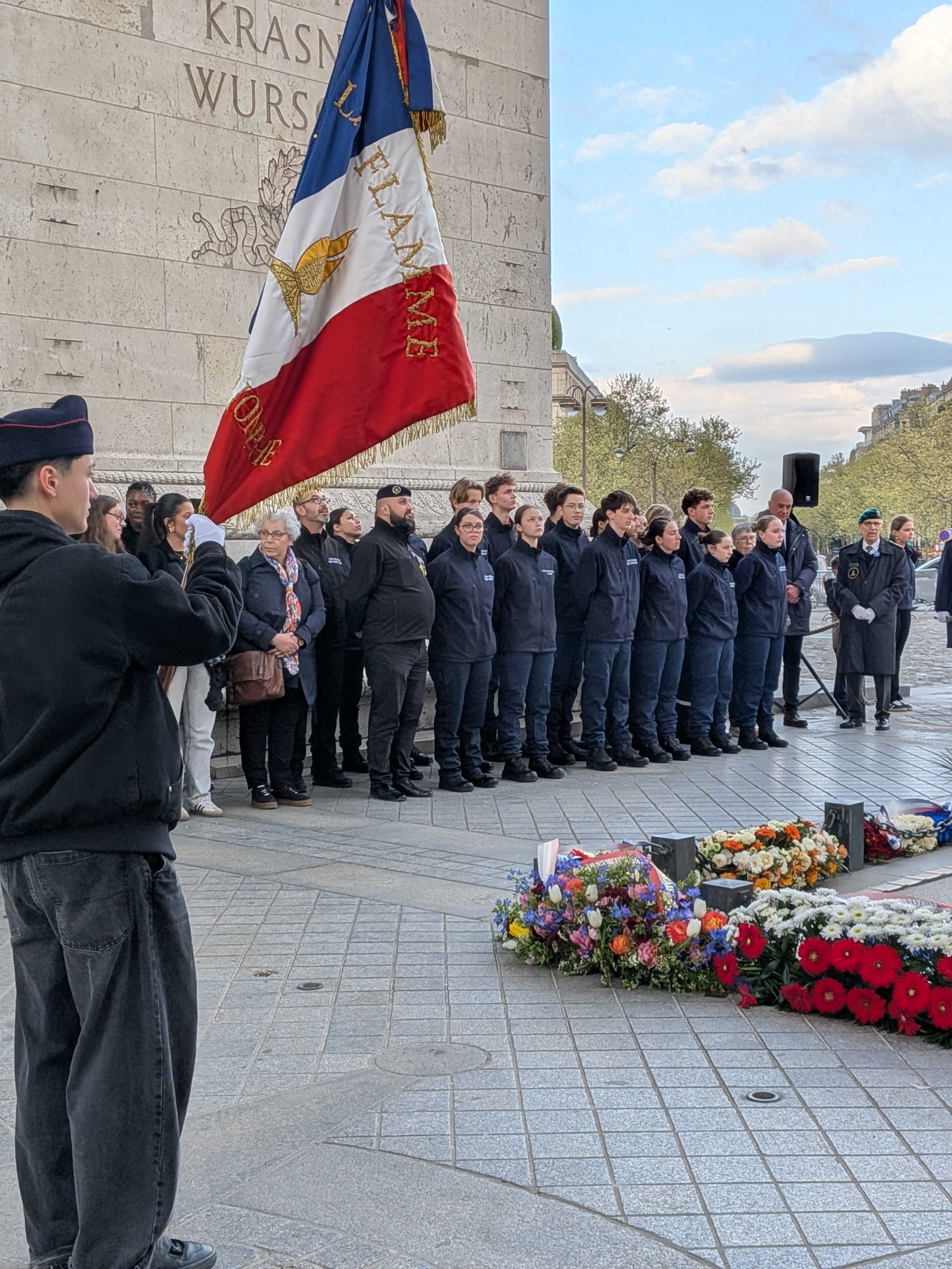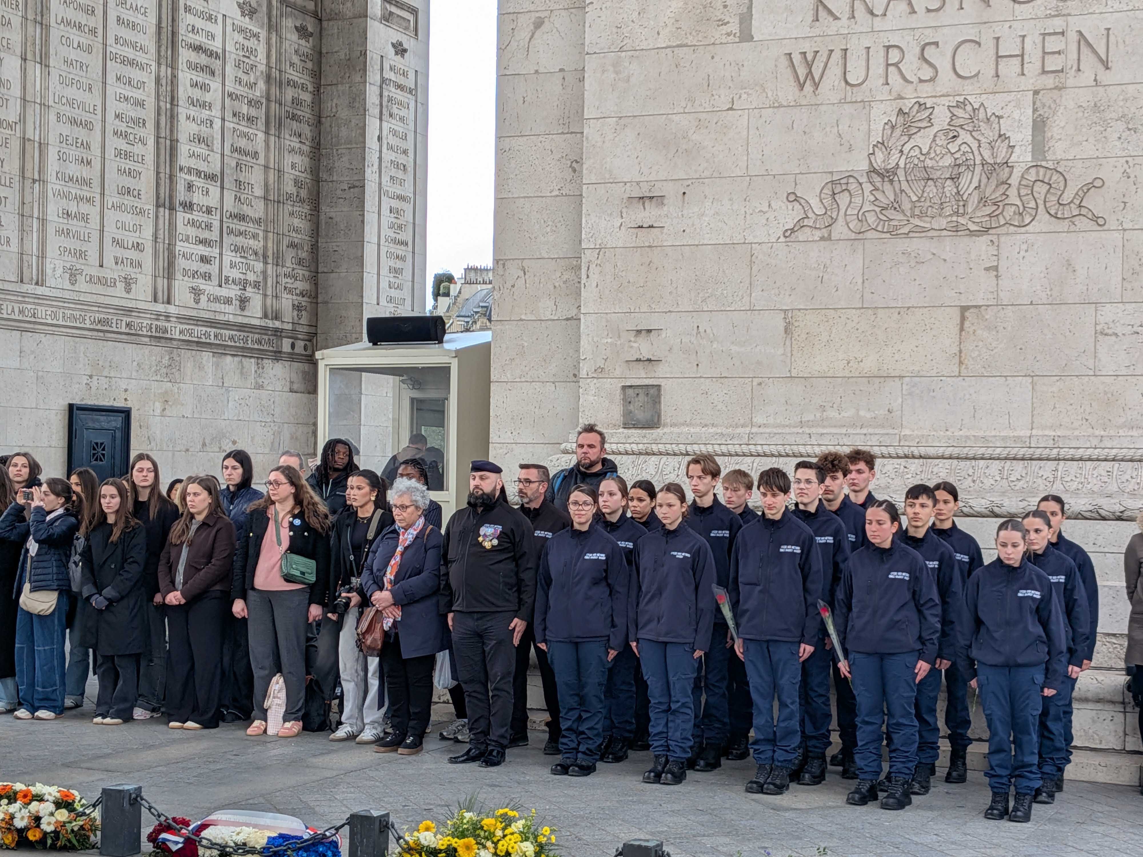 Jeudi 2 avril 2026, invités par l’Union Départementale de la Médaille Militaire de Haute-Marne et avec le concours de la 1727ème section de Joinville – Wassy, 18 élèves de seconde des métiers de la sécurité du lycée Emile Baudot et 23 collégiens de la classe de troisième du collège Paul Claudel de Wassy se sont rendus à la cérémonie journalière du ravivage de la Flamme sous l’Arc de Triomphe, en présence de M. Claude COUSIN, proviseur, de Mme DROUIN, principale et de 4 professeurs accompagnants.