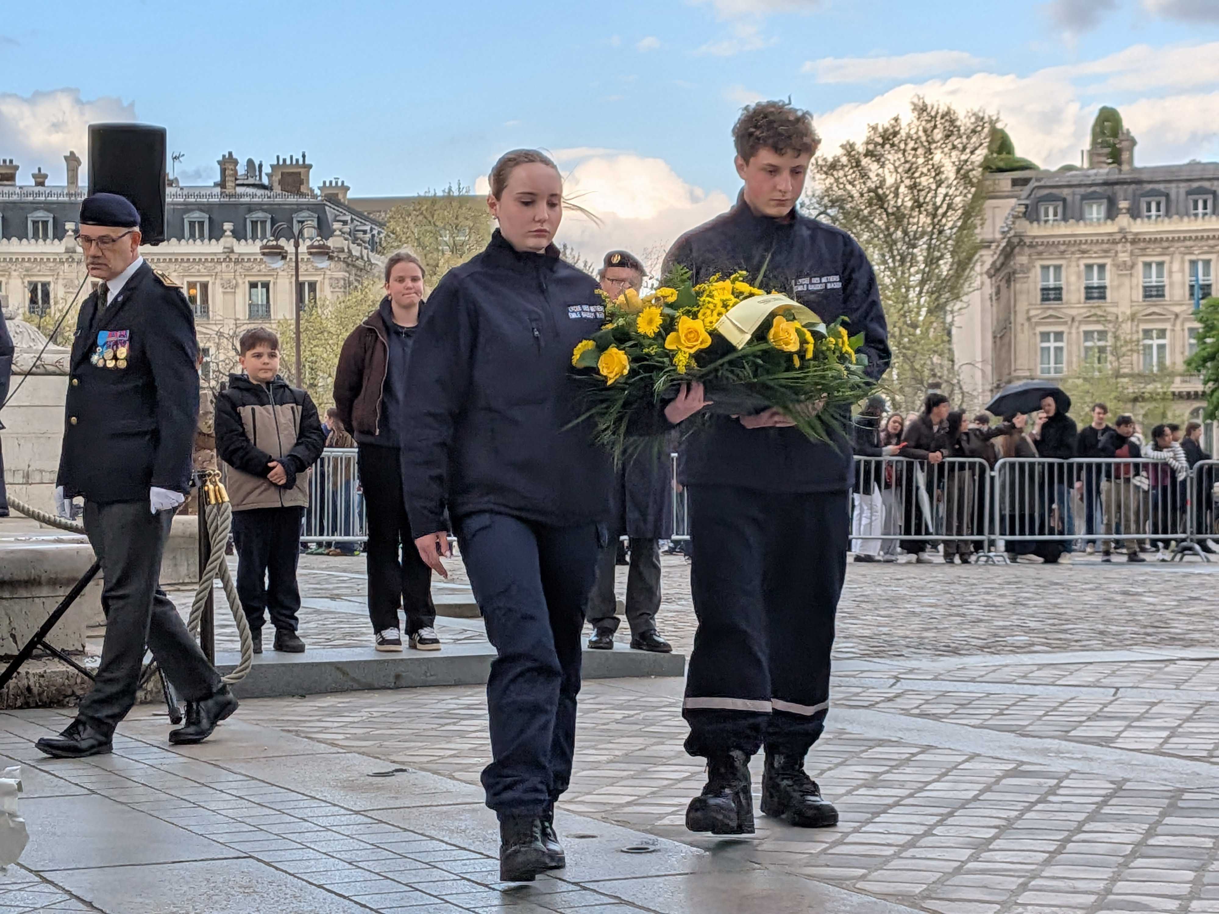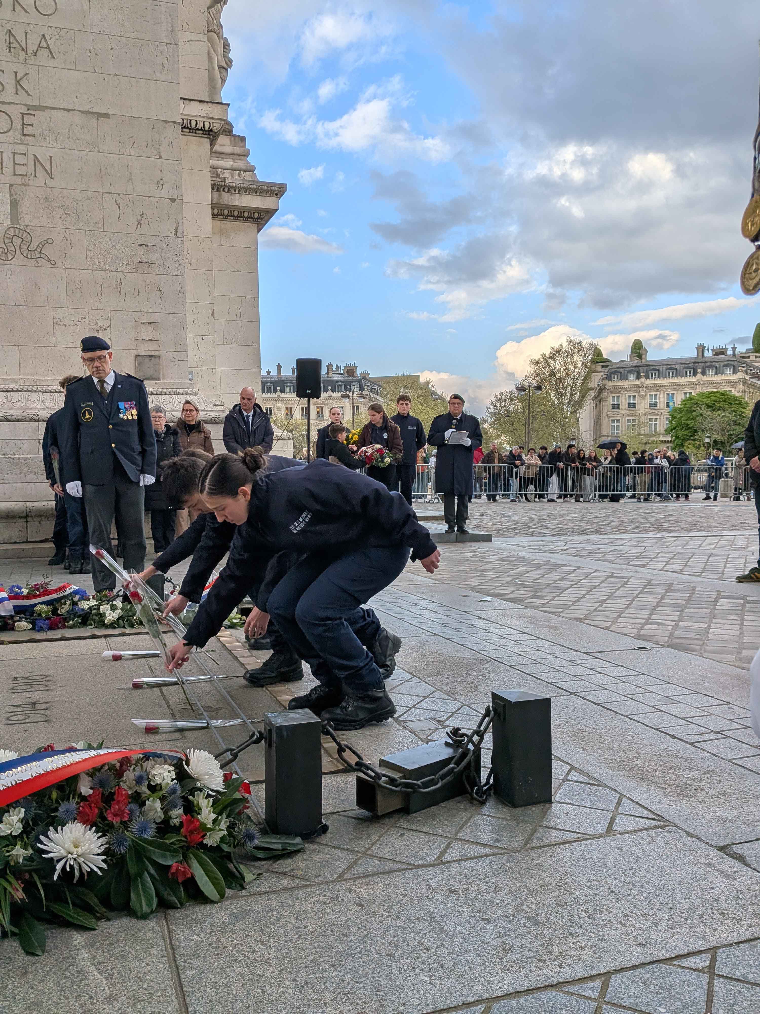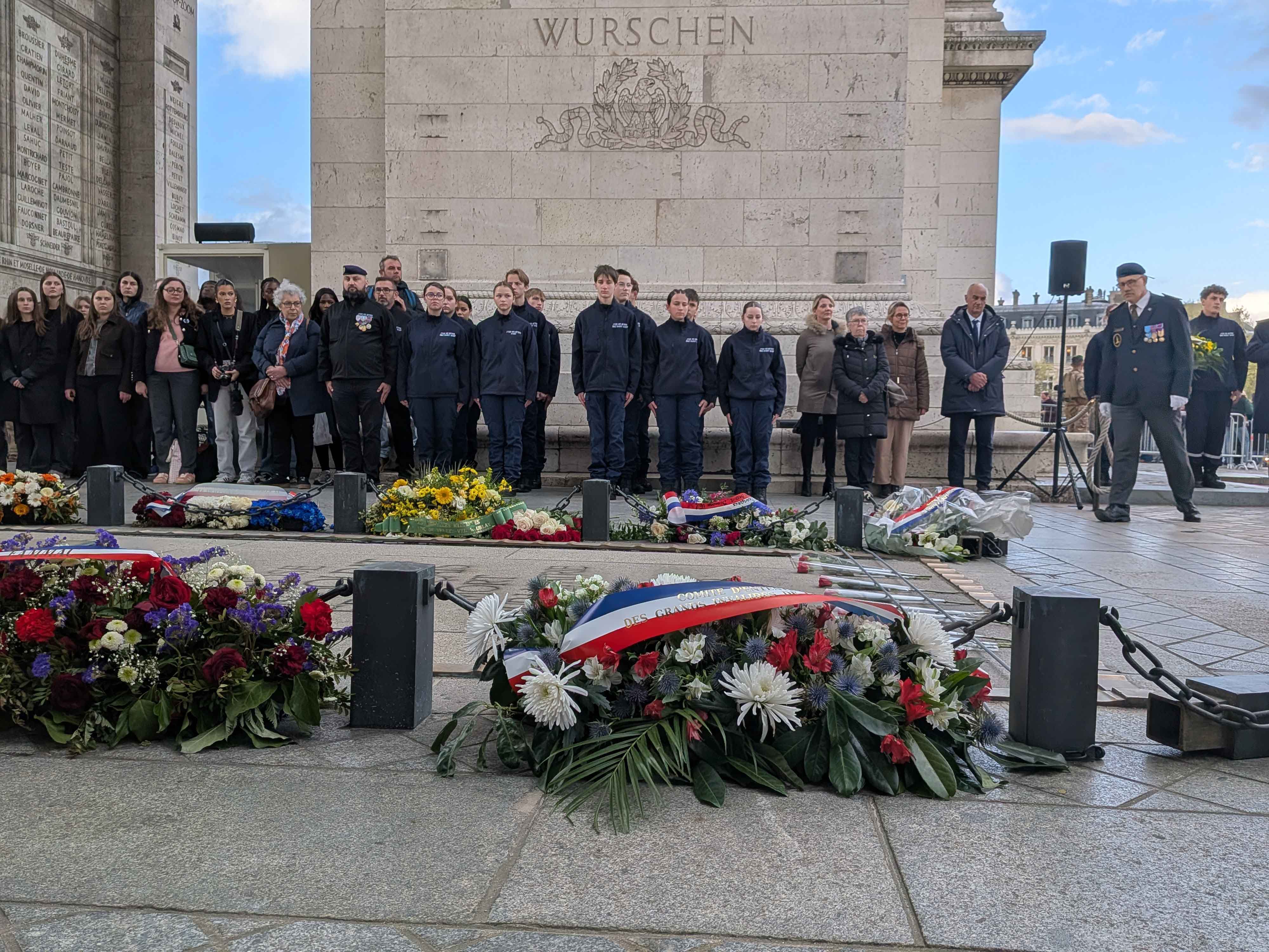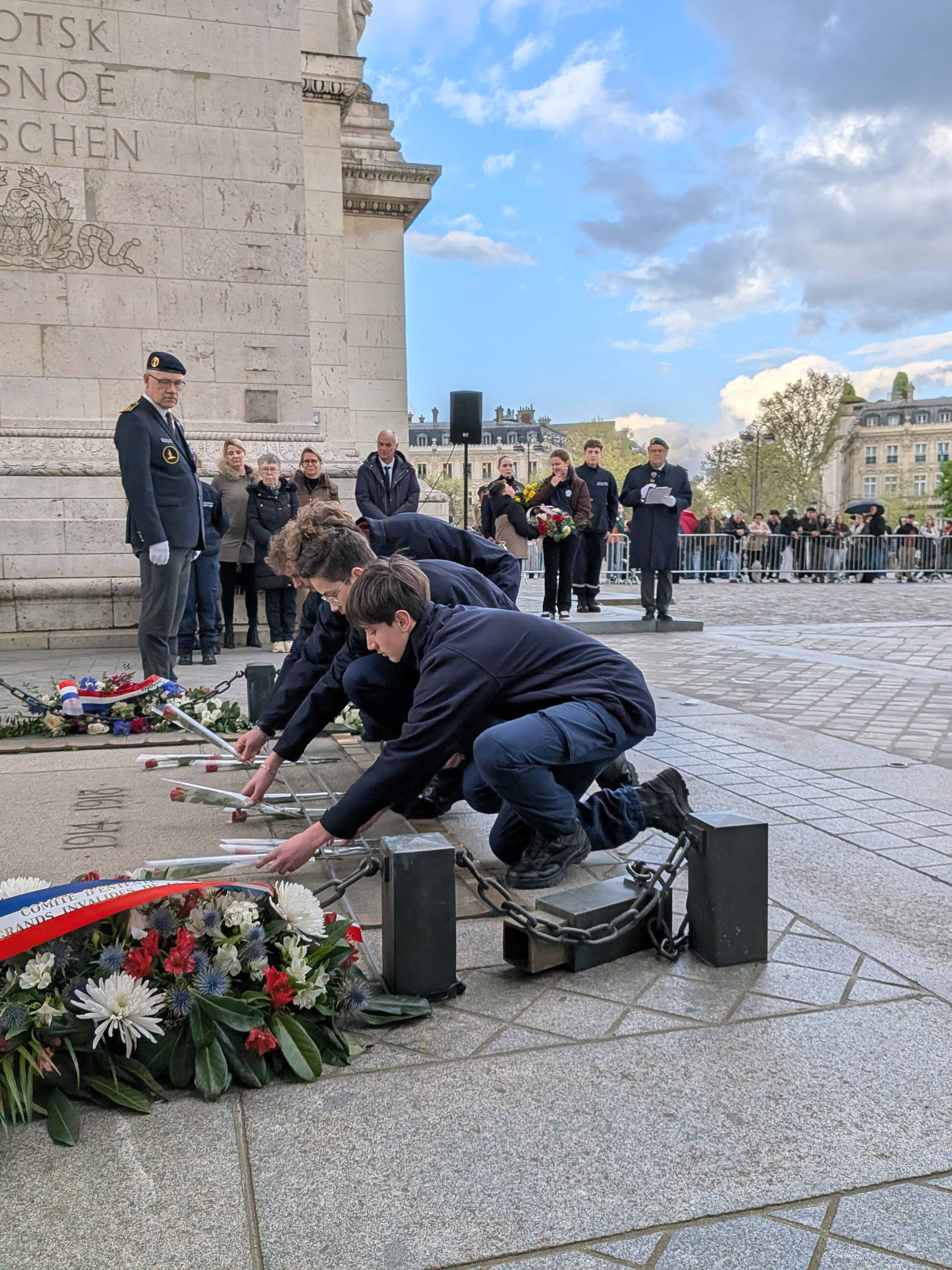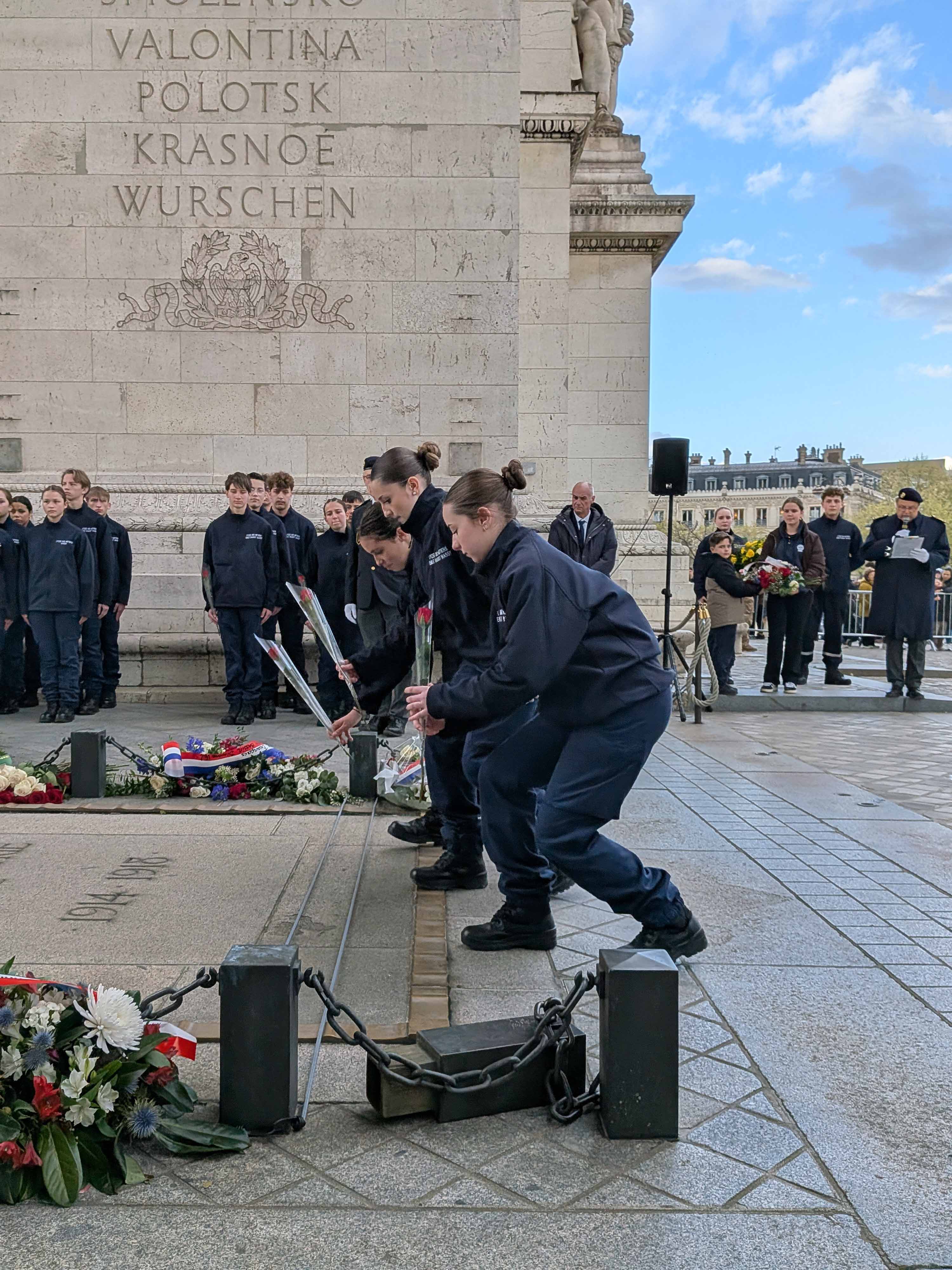 Le dépôt de 10 roses sur la tombe du Soldat inconnu et le port de la gerbe étaient assurés par des lycéennes et des lycéens.