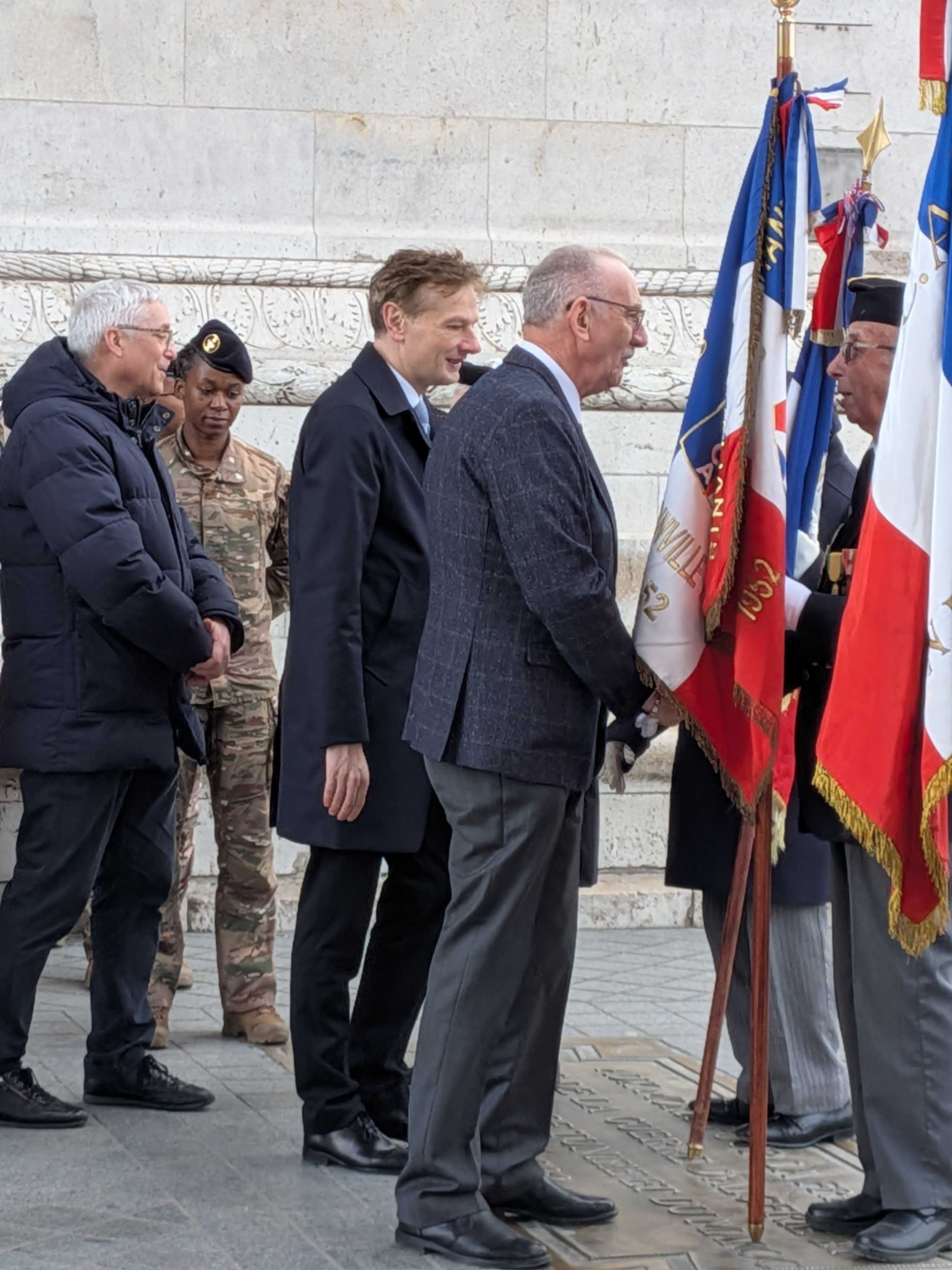 Le drapeau de la section de la Médaille Militaire était porté par Lionel LEFKOUNE, porte-drapeau titulaire de la section. Le drapeau du comité du Vallage de la FNACA de Joinville était porté par François STÉPHAN, titulaire de la Médaille Militaire depuis le 10 novembre 2025.