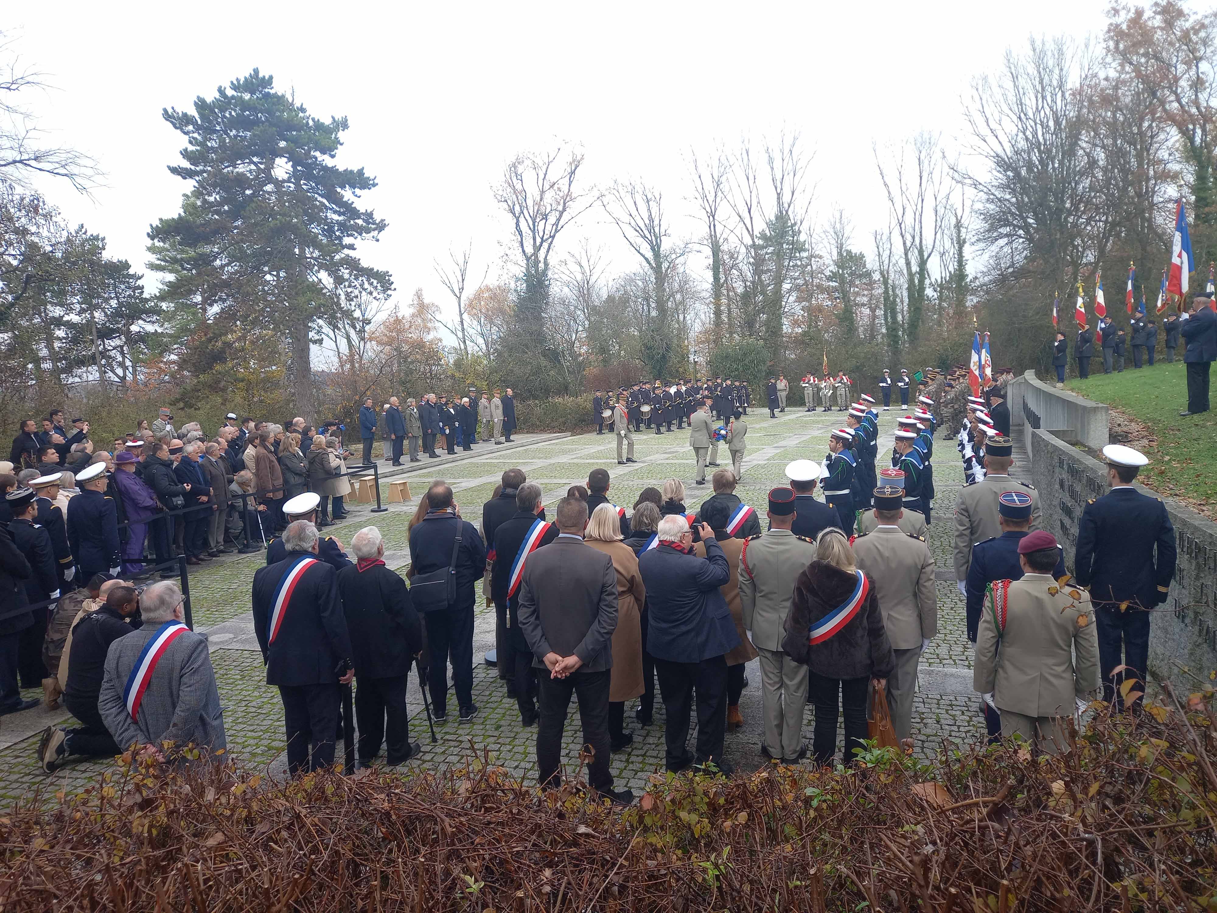 Parmi les nombreuses autorités civiles et militaires, on pouvait noter la présence de Mme VAUTRIN, ministre des Armées et des Anciens combattants, le Général Thierry BURKARD, délégué national de l’Ordre de la Libération et ancien chef d’Etat Major des Armées, Mme Régine PAM Préfète de Haute-Marne et bien d’autres autorités dont le petit fils et la petite fille du Général.